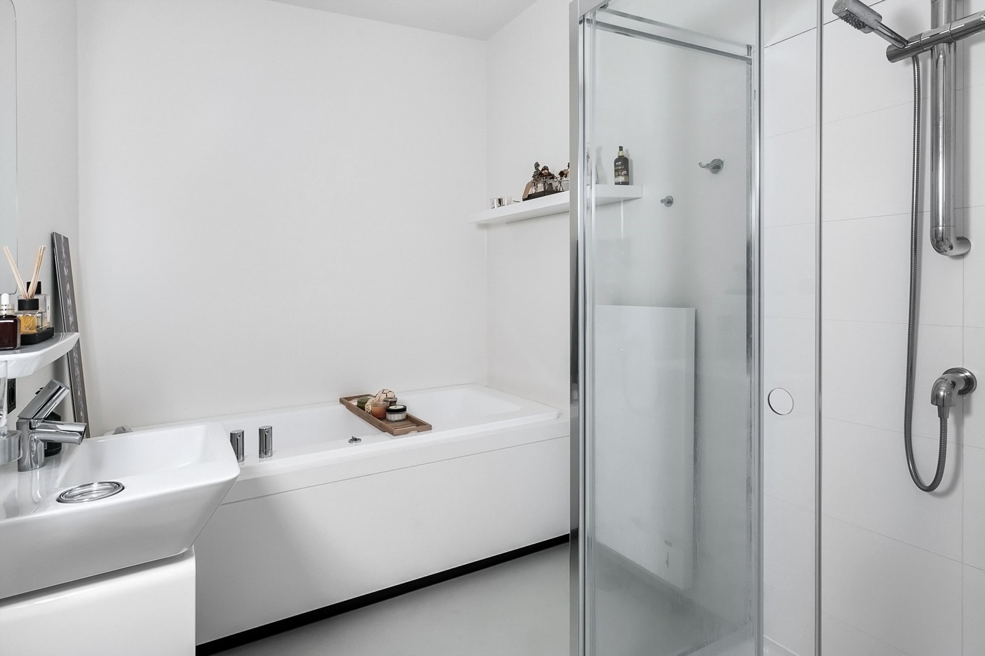 - Badkamer met sanitair van Alessi (inloopdouche, wastafel en ligbad);