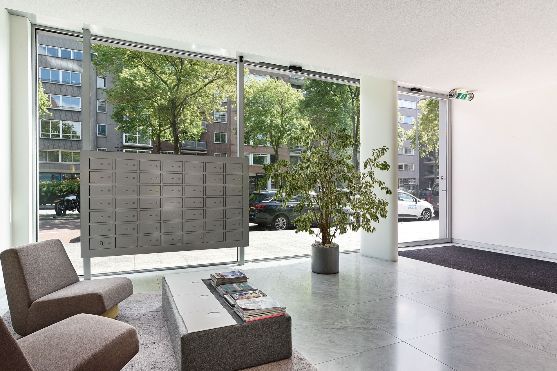 - Parkeren: huurders in het complex hebben de mogelijkheid een privé parkeerplaats te huren in de ondergelegen parkeergarage;